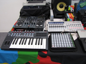 ▲Novationのコントローラ。手前右が64個のマルチカラーパッドを搭載したLaunchPad、その左はNocturn Keyboard。