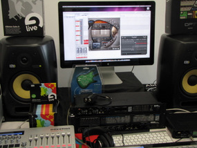 ▲MOTUのインターフェイスは下から896 mk3、828 mk3。その上に乗っているのがZbox。画面の音源はは「Ethino 2」。