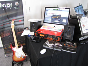 Pro Tools関連製品を並べたアビッドテクノロジーのブースでは、8入力の「Fast Track Ultra 8R」、26入力の「ProFire 2626」といったM-AUDIOのオーディオ/MIDIインターフェイスなどを展示。そしてそのオレンジ色のボディがとくに目立っていたのが中央に置かれたギター用レコーディング/エフェクト・プロセッシング・システムの「Eleven Rack」。フロントパネルは大き目で視認性、操作性もよく、アンプ/エフェクトプロセッサーとしてステージなどで単体使用する際にも便利。もちろんPro Tools LEも付属するので、制作&レコーディングシステムとしても有用だ。