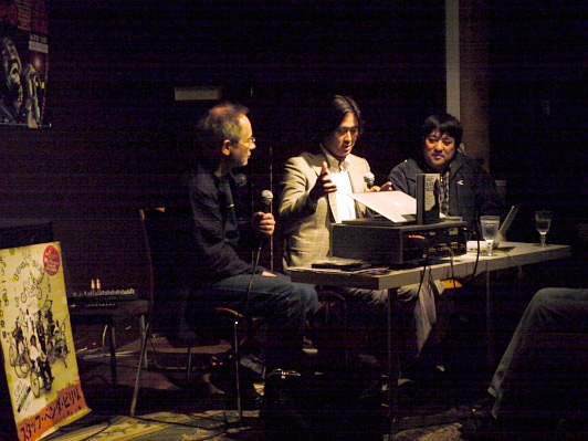 【第二部】では、カメラマン酒井透とJICAの飯村学が登壇。まずはピーター・バラカンによる2010年9月中旬~10月中旬に来日公演を行なう、スタッフ・ベンダ・ビリリのドキュメンタリー映画『ベンダ・ビリリ!~もう一つのキンシャサの奇跡』(9月シアターイメージフォーラムで公開)の解説のあと、飯村がコンゴ共和国という国とキンシャサという街についての概要を説明。2007~09年に滞在していたという飯村は、縦横100kmに1000万人もの人々が暮らすこの街の風景の写真を見ながら、生活、政治、歴史などについてユーモアを交えながら語ってくれた。