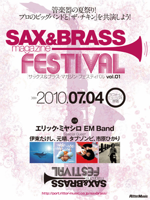 2010年7月4日(日)にラフォーレミュージアム原宿で行なわれるこのイベントは、エリック・ミヤシロ率いるEM Bandのライブ・パフォーマンスを軸に、管楽器ファンに楽しんでもらうための、さまざまな催し・企画を予定されている。