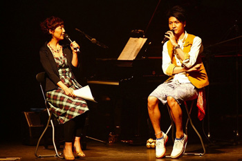 クリス智子の呼び込みとともにステージに登場した森山直太朗は、「何処かで誰かが」「ラクダのラッパ」「花鳥風月」と立て続けにニュー・アルバムから3曲を披露。息を飲むほどの圧倒的な歌唱力に会場の誰もがじっと耳を傾けている。「さくら」「生きてることが辛いなら」などヒット曲も交えて熱唱、MCでは、「いろんな人との出会いがあって、アルバムができました。このライブもその道の先にあったものだと思う」と噛みしめるように語り、ライブでは初めてという「言葉にすれば」まで、12曲を歌い切った。