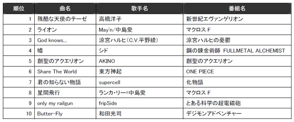 ◆アニメ/特撮/ゲームランキング