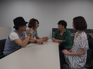 今回のゲストは、第2回タイナカサチ主催イベント「&SACHI Vol.2~Home Sweet Songs」(6月30日@大阪umeda AKASO)に出演が決定しているUnlimited tone。Dody、iri、Luzからなる3人のハーモニーが無限の景色を描き出すミラクル・ボーカルチームだ。この日は対談前に彼らのフリーライヴが都内で行なわれ、タイナカも沢山のお客さんに混じって観戦。関西ノリのMCに抱腹絶倒し、3人の気持ち良い歌声マジックにやられ…興奮冷めやらぬまま対談に突入しました!