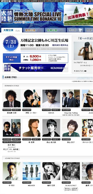 ◆<情熱大陸 SPECIAL LIVE SUMMER TIME BONANZA’10>オフィシャルサイト