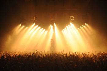 <THE UNWAVERING FACT OF TOMORROW TOUR2010>と銘打たれた今回のツアーは、去る1月9/10日に行なわれた日本武道館公演から半年弱を経て開幕に至ったもの。その二夜公演をもって、現時点での最新オリジナル・アルバムにあたる『UROBOROS』(2008年11月リリース)を基軸とする一連の活動が完結に至っていただけに、オーディエンスの興味は当然ながら、彼らがステージ上で披露してくれるはずの“次”に向けてのヒントが何であるかに集中していたに違いない。が、そうした当然の好奇心すらも余分な邪念として蹴散らしてしまうようなすさまじさが、この夜のライヴにはあった。