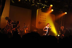まず最初に登場したのは、5人組ロック・バンドuniverse。メンバーが登場するや、観客から声援が沸き起こるほどの人気の高さを伺わせた彼らは、2009年にロッテ×ソニーミュージック「歌のあるガムプロジェクト」オーディションでグランプリを獲得し、2010年5月5日にロッテガーナミルクチョコレートCMソングとして大量オンエアされた「ハルイロ」でメジャー・デビューした。この日のライヴでは、その「ハルイロ」を始め、テレビ東京系アニメ『BLEACH』のエンディング・テーマとなる8月4日リリースの新曲「echoes」など、計4曲を披露。トップバッターらしく勢いのあるステージングで会場を盛り上げた。