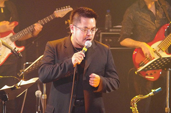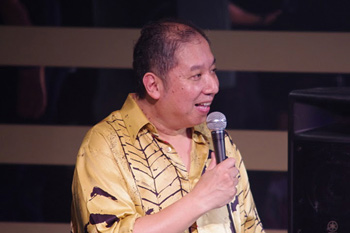 | ▲ライヴを終えてくつろぐ向谷実氏。異なるジャンルを終結させたライヴを成功させて満足していた。 |