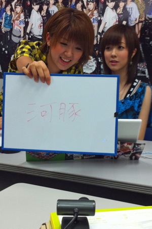 結局、このふたりのトークで番組最高視聴者数2400人を突破。さらに世界各国からアクセスされているという状況を知ったふたりは、各国の言葉でファンに改めてにこやかに挨拶。ところがここで、再度、千奈美に漢字の読み問題が出題される。ファンから寄せられたコメントをもとに出題された漢字は「河豚」。これを「ガトン」と読んでしまった千奈美は、最後の最後で、これまで彼女が守り抜いてきた(?)知的なイメージを崩壊させてしまったのだ。