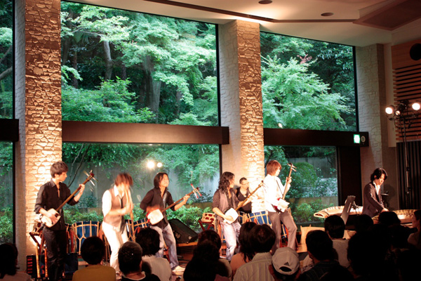そして、箏の市川慎と三味線の伊藤圭佑が加わり、本日のフルメンバー。以前のレポートにも書いたが、とにかくこの和楽器オーケストラは、ロックなのだ。雄々しいのだ。