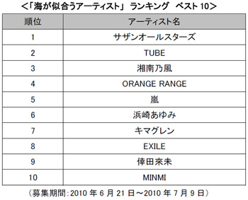 ケータイサイト「JOYSOUND[歌詞]」「JOYSOUND[カラオケ]」にて行なわれた「海が似合うアーティスト」ランキングが発表となった。