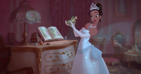 王道プリンセス・ストーリーといえば、『白雪姫』(1937年公開)、『シンデレラ』(1950年公開)、『眠れる森の美女』(1959年公開)に代表される「夢見るヒロンが苦労の末に、愛しの王子様とキスをして末永く幸せに暮らしました」となるもの。そのはずが、王子様とのキス=幸せになるという方程式を覆し、『プリンセスと魔法のキス』では冒頭から予想外の展開を見せる。かつてのプリンセス・ストーリーと大きな違いだ。初期のディズニー・プリンセス(白雪姫・シンデレラ・オーロラ姫)が“受身のヒロイン”だったのに対して、1980~1990年代のプリンセス(アリエル・ベル・ジャスミン)は、“自ら行動を起こすヒロイン”に。そして本作の主人公ティアナは“才能ある自立したヒロイン”として描かれている。目標をしっかり見据え、夢の実現に向かって突き進むパワーを持っているものの、頑張り過ぎて人生を楽しむ余裕がないティアナは、まるで日々働く日本の女性たちのような21世紀版プリンセス。このヒロイン像こそが、本作品の大きな魅力と言える。