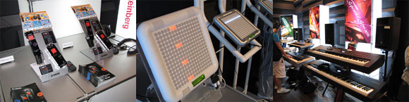 展示スペースは「MOTIF XS」をはじめ「MM6」や「MO6」といったシンセサイザー、ステージピアノ「CP1」などに加え、「TENORI-ON」やレコーダー「POCKETRACK」シリーズもラインナップ。Steinberg関連では、発売前のオーディオインターフェイス「CI1」および「CI2+」もいちはやく触れるようになっていた。もちろん、バージョンアップされたばかりの「Cubase 5.5」もスタンバイ。併設されたサブステージでは、このCI2+&Cubase 5.5による音楽制作セミナーや、シンセサイザー&ステージピアノセミナーが行なわれた。