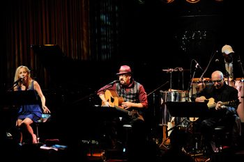 7月16日(金)、ザ・ボサノヴァ・ホテルが東京丸の内のコットンクラブでライブを行なった。マイケル・センベロ(Vo、G)、ブルース・ガイチ(G)、ジェイニー・クルーワー(Vo)によるザ・ボサノヴァ・ホテルは、アメリカのアダルト・コンテンポラリーのシーンで活躍する3人が組んだバンドで、2009年に発売したアルバム『ムーン・アイランド』をひっさげての来日公演となった。