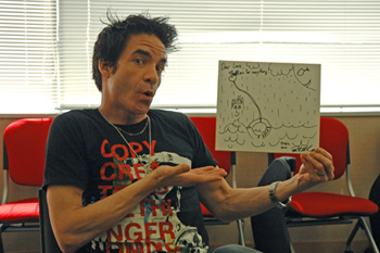 ライヴでのMCもユーモアたっぷりだったヴォーカルのパット・モナハンだが、インタビューの時も真面目な顔してギャグを言いまくり、実直ないい歌のバンドというトレインのイメージをいい具合に壊してくれた。例えば、曲を初めて書いたのはいくつの時?という質問には「16歳だったんじゃないかな…つまり4年前だね、はっはっは!」。自分で曲を書くようになったのは、単なるシンガーではなくアーティストになりたかったから?「その通り。今の僕は、これまでで一番アーティストらしくなってるんじゃないかな。文句ばっかり言ってね、はっはっは!」。トレインの音楽はとてもアメリカを感じさせますが、イギリスの音楽とはどう違うと思いますか?「彼らの音楽にはハッピネスが欠けてるんだ。僕は僕の音楽を聴く人をハッピーにしたい。3分間のハッピネス。セックスと同じだよ、はっはっは!」。最高のソングライターを3人挙げて下さい。「…3人しか選べないなんて、怒りを感じるよ、凄い屈辱だ、はっはっは!」。