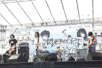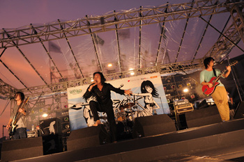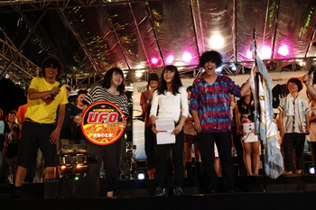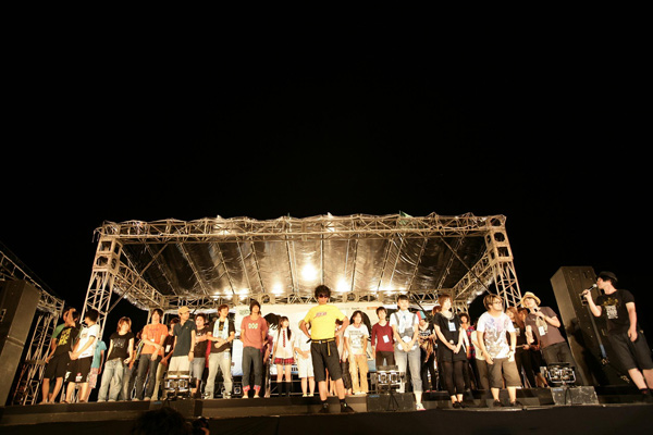 今回の<閃光ライオット 2010>のデモテープ審査には、過去最高の10,000通を超える応募が殺到、当日は、猛暑の中、全国10,000通超の応募を勝ち抜いた、ファイナリスト15組のライブと最終審査が、11:00~20:30に渡り野外フェス形式で行われ、会場には全国から駆けつけた12,000人のリスナーらが朝早くから会場入りし、声援を送った。