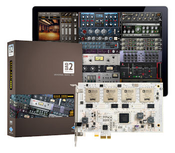「UAD-2 QUAD OMNI」は、Analog Devices社のSHARC DSPを4基搭載したPCI Expressカードとプラグインからなるシステムで、驚くべきDSPパワーに加え、クラシックなビンテージアウトボードを回路レベルでシミュレートしているのが特徴。最大で4枚までのUAD-2カードの同時使用が可能で、OMINIでは40種類のプラグインと50ドルのバウチャー(クーポン)が付属する。