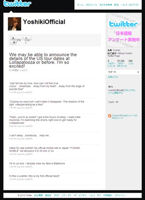 すでにファンの間では周知されているYOSHIKIのオフィシャルTwitterだが、開始して2日にしてすでに15000以上ものフォローを獲得、時間を追うごとにその数字を増やしている。