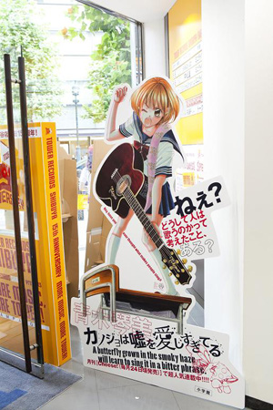 <カノ嘘フェス>初日の朝、タワーレコード渋谷店入り口には女の子たちが行列を作って開店を待つほどの人気だけに、この『カノ嘘』の聖地でのリアルイベントは、『カノ嘘』の世界にも何らかの影響を与えるかも。アニメの中で、イベントを見に来たあなたが描かれたりして。
