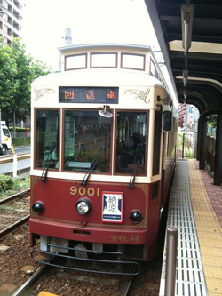 今回のライブ、昼間の時間帯には都営荒川線を使った納涼電車ライブを行ない、夜はライブハウスでのライブという2本立てだ。荒川線でのライブは、ヘッドマークを付けて、第1便13:00~早稲田発→三ノ輪橋行き、第2便14:00~三ノ輪橋発→早稲田行きで行なわれた。