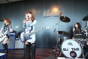 8月4日にデビュー・シングル「東京稲妻」をリリースした美形ガールズバンドBLiSTARが、5日、東京タワー大展望台・Club333特設ステージでミニ・ライヴを開催した。