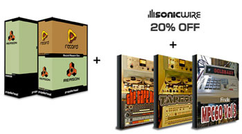 さて、先行予約特典付き新規ユーザー向け「Reason 5」と「Record Reason Duo1.5」の受付の内容だが、8月24日午前までに注文すれば発売日に手元へ届けられる。さらに、予約者全員にファットなサウンドで人気のGoldbaby社のビンテージReFillライブラリー「The Tape 808」、「The Tape 909」、「MPC60 Vol 3」のいずれか1つ約2,500円相当をもれなくプレゼント。さらにさらに、音ネタのDL販売サイト「sonicwire.com」から期間限定20%OFFクーポンも入手可能となっている。特典内容としては、特典付き有償アップグレードにさらにsonicwire.comのクーポンが付加されるといった形となっている。