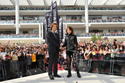 8月11日に約2年ぶりとなるニュー・シングル「Naked arms / SWORD SUMMIT」をリリースしたT.M.Revolutionが、15日(日)ラゾーナ川崎プラザ ルーファ広場グランドステージにて、<T.M.R.15 vs 戦国BASARA3 夏の陣!>と題した発売記念イベントを開催した。