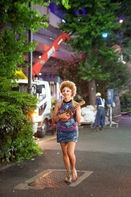 マルティナ・トップレイ・バード、都内夜中をウクレレひとつで歩きながらパフォーマンス