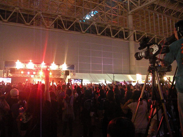 そして2010年は、音の鳴らないドラム、ギター、ベースがステージにセッティングされ、楽器が弾けない人でもカラオケから流れる音に合わせて当て振りするだけで、まるで楽器を演奏しているかのように見えるという「NA-RI-KI-RI KARAOKE LIVE」を開催。ソロで歌う人、グループ参加で用意された楽器を駆使してエア・パフォーマンスを披露する人も。この日の出演アーティストの楽曲が披露されると、ブース前に集まったオーディエンスも、モッシュやヘッドバンギングでライヴさながらの盛り上がりを見せた。