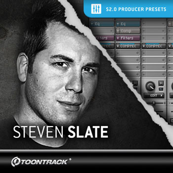 「S2.0 PRODUCER PRESETS / STEVEN SLATE」は、Toontrack社のドラム音源「Superior Drummer 2.0」専用の追加コンバイン・プリセット集、「プロデューサープリセットシリーズ」の第二弾となる製品。プロデューサーによる、キット構成、フェーダー位置、エフェクトのかけ具合などの情報を収録したコンバイン・プリセットを7種類収録する。