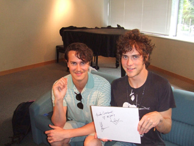 この日は一番乗りのインタビューとなったのだが、取材現場に到着すると、2人とも既にきっちりと取材モード。US若手バンド屈指のイケメンとして大人気のアンドリューはまさに天然児という感じで、常にどこかフワフワしている。この日はフェス号用の取材とあってゆるい雰囲気で進めていったのだが、時おりこっちが質問前に姿勢を正してみると、彼もつられて姿勢を正しながら、唾をゴクリ。「一体どんな質問がくるんだ?」と緊張しているところにゆるい質問をしてみたら、その後1人でずっと笑っていた。一方ウィルはというと、インタビューがあまり得意ではないらしく、よく考えながら一つ一つ言葉を選んで話してくれる。ただし、アンドリューが言ったことを一言でポンとまとめてくれる瞬間があって、さすがはバンドの屋台骨といった感じだった。