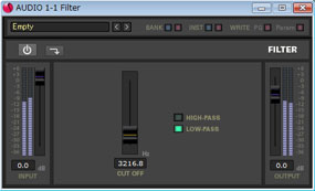 低い周波数の信号をカットするHIGH-PASSフィルターと、高い周波数の信号をカットするLOW-PASSフィルターが搭載するFILTER。
