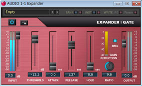 THRESHOLD値を下回る信号を圧縮してTHRESHOLD値を上回る信号を強調しダイナミックレンジを広げるEXPANDER & GATE。ノイズゲートとしても使用可能。