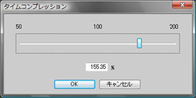 タイムコンプレッションは50~200%の比率で長さを指定可能。付属のオーディオデータでももちろん使用可能だ。