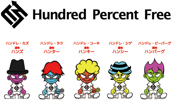 Hundred Percent Free(ハンドレッド パーセント フリー)のCDジャケットにたびたび登場しているキャラクター“ハンドレくん”たちの正体が公開された。