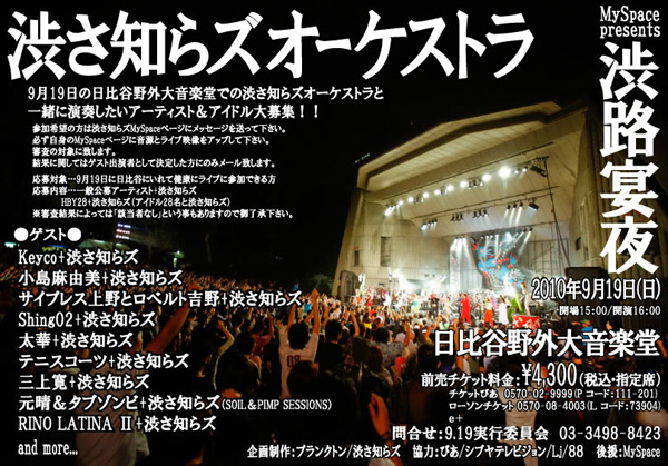 一方、渋さ知らズといえば、これまでフリー・ジャズの巨匠デイヴィッド・マレイ、NYパンクの伝説ジェイムズ・チャンス、世界的人気の電気親指ピアノのバンド、コノノNo.1、ジプシーブラスの最高峰ファンファーレ・チォカリーアなど、一癖もふた癖もある海外アーティストらと感動的な共演を果たし、ぶっといぶっ飛びグルーヴを聴かせ、日本の聴衆を魅了してきた。彼らもまた、2010年7月には3週間の欧州ツアーを成功させ、現在脂ものってノリにのっている絶好調状態にある。