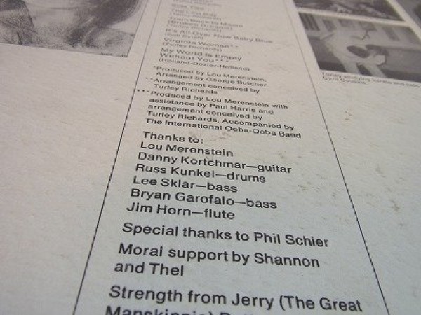 実はこのアーティストのことはほとんど知らなくて、ブルーアイドソウル・AOR方面の人、というくらいのことしか知りませんでした。ツアーで京都に行ったときにふらっと寄ったレコード屋にて、この何とも不思議な雰囲気のジャケットとその傷み具合が妙に目に留まったのでクレジットを見てみると、Danny Kortchmar、Russ Kunkel、Lee Sklar …。そう、セクションの面々がバックをやっているのです! AOR方面の人だと思ってたのでちょっと躊躇しましたが(笑)、’71年リリースのアルバムということで買ってみました。というのも、70年代中後半にAORで名を馳せた人も70年代前半までは良質のアメリカンロック・SSW系サウンド、ということはよくあるからです。Boz Scaggsなんかはいい例ですね。