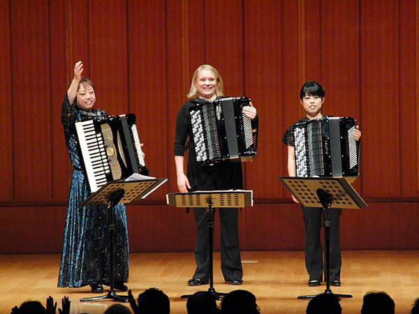 休憩をはさんで、最初の曲は9月12日に行なわれたJAA第5回国際アコーディオン・コンクールの優勝者による演奏。今回の優勝者は、もともとこのワークスに出演予定だったヘイディ・ルオスイェルヴィ。そのため、とても話が順調に進んだとか。演奏曲はコンクールの課題曲。