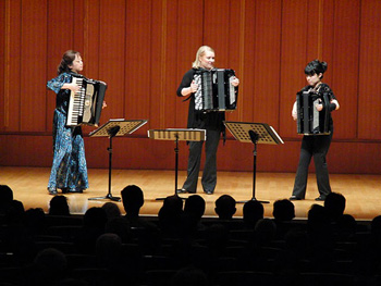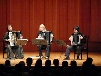 2010年9月18日14:00。浜離宮朝日ホールで行なわれた<御喜美江アコーディオン・ワークス2010>。2010年は彼女にとって記念の年。<御喜美江アコーディオン・ワークス>が今回で20回。そして、ドイツの音楽大学で教え始めて30年。また、アコーディオンを習い始めてから50年という数字が見事に揃った年なのだ。