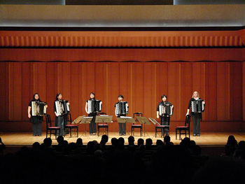 この曲は、アコーディオンの楽曲にしては、非常に長い約18分の曲。また、Part1~3は、終始同じ8ビートをリズム・パターンを演奏し続けるというもの。6人の息が合わないと成立しない曲だ。演奏は見事だった。引きこまれる感覚。刻まれるビートの心地良さと正確さに、背筋が伸びる思いだ。曲の最後も、見事ピタリと終わり、圧巻だった。