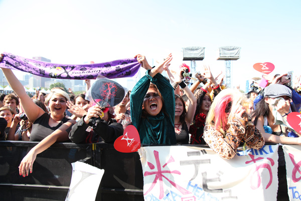 X JAPANは5万5000人を集める東京ドーム公演を何本も経験し、2010年1月には5億円をかけたミュージックビデオ撮影を行なうモンスターバンド。しかし「アメリカでは新人なのだから」と謙虚にトリの3つ前での出演を選んだ。