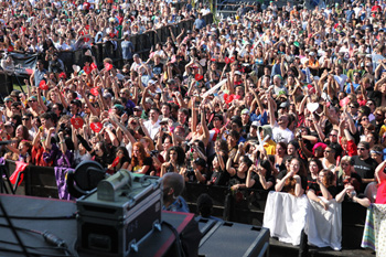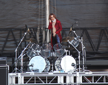 50分で「紅」「Jade」など5曲を披露。映画「SAW4」のテーマ曲に起用された「I.V.」では大きな歓声が上がった。また日本では両手を顔の前で交差させ飛び跳ねるXジャンプで知られる「X」では、ジャンプをするファンを遠巻きに見ていた観客も、徐々にジャンプの輪に加わり2万人以上が会場を揺らした。少しずつ周りを巻き込んで膨らんでいく様は、8月7日千葉マリンスタジアムで行なわれた<サマーソニック>に初出演した矢沢永吉が「止まらない Ha~Ha」を歌った際、ファンが曲に合わせタオルを宙に飛ばすシーンと重なった。