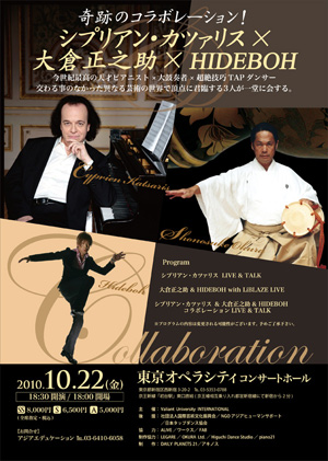 超絶技巧と賞されるクラシック・ピアニストのシプリアン・カツァリス、ジャパニーズ・ロック、ジャパニーズ・パンクと称されることもしばしばという能楽太鼓奏者の大倉正之助、そして北野武監督映画『座頭市』のラストを飾ったタップで一躍脚光を浴びたタップダンサーのHIDEBOH。