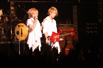 夕霧が「立ち上がれなくなったら、闇の底まで沈んで下さい」と、演奏した「深海」では、盟友でもある「A」のメンバーRookie Fiddlerもバイオリンでサプライズ出演。会場のオーディエンスは、個々に何かを思う様に聞き入っている。バラードナンバーが終わるとうって変わり、後半はノンストップ状態で激しいナンバーが続くものの、「Farewell Line」では会場が一気に暖かい気持ちに浸りながら本編が終了。まったくもって予測不能なバンドだ。