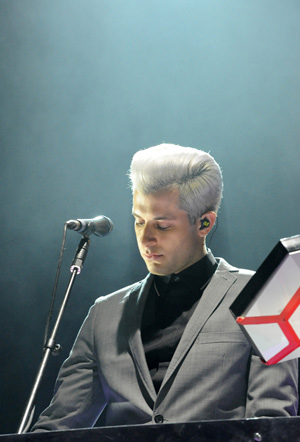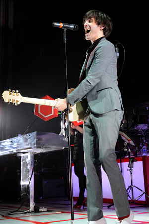 ショウ前半は、グリーンワルド、ドゥーガル、Spank Rockが順にヴォーカルを取り、新作『Record Collection』だけでなく、1st『Here Comes The Fuzz』や爆発的なヒットを誇った前作『Version』のトラックをパフォーマンス。