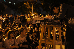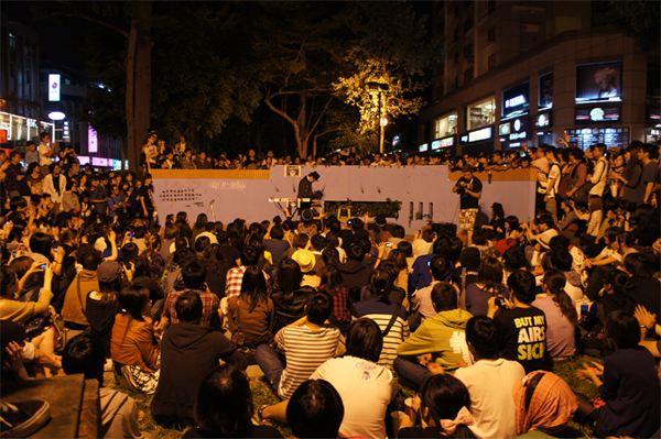 台湾滞在から、今回のライヴ、サイト・ジャックまで、全ての動向は自身のツイッター上でつぶやかれ、その独特の表現ゆえ、日本、台湾のファンの間では「本当に台湾にいるのか?」などいろいろな憶測が飛び交っていた。にもかかわらず、ライヴ前から現場には多くの若者が殺到。H ZETT Mのトレード・マークである“青い鼻”のペイントをした現地ファンも多く見受けられ、本人登場とともに大きな歓声があがった。