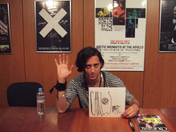 ところがオフィスに着いてみると、予定が押しているようでしばしカール待ち。どうしたのかなと思っていたら、UKのマネージメントからブログ更新の催促が来ていたらしく、取材と取材の合間に必死になって書いていたのだとか。「ごめん! お待たせ!」といって取材ルームに入ってきた彼は、