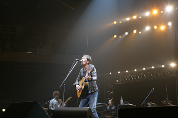 続いて山下達郎が登場。デビューして35年、山下達郎が日本武道館でライヴを行なうのは初めてのこと。「私はワーナーミュージックの全アーティスト、スタッフ、従業員の中で最年長です。」と会場を沸かし、「武道館で自分の曲を歌うのは生まれて初めてですが、今日はお祭りなので2階の端まで届くように一生懸命歌わせてもらいます」と、「SPARKLE」を披露した。57歳とは思えぬ会場を突き抜けるような伸びやかな歌声に観客は酔いしれ、続いて「希望という名の光」を演奏。魂の熱唱に割れんばかりの拍手が会場から起こり、圧巻のパフォーマンスを見せつけた。