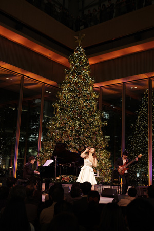 平原綾香は、「こういう場所なので、お仕事帰りの方とか、色んな方が色んな思い出来ていると思う。みなさんと良い思い出をつくりたいと思います」と語りパフォーマンスを披露。クラシックのカヴァー作品を多く歌い続ける平原綾香だが、「(カヴァーする際は、)メロディーだけでなく、作者の思いも調べて歌っています」と胸の内を明かし、クラシックのカヴァー曲を中心に全8曲を歌いあげた。会場に集まった多くの観客からの声援に「アットホームな会場ですね」と笑顔で応え、一足早いクリスマス気分を堪能したようだ。