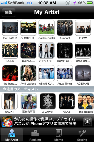 iPhone用音楽無料アプリ「歌手☆コレ」のMy Artistは十人十色、同じ画面の人は2人といないことだろう。そこにはみんなの音楽への想いやこだわりが表われるもの。